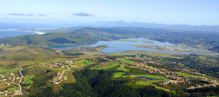 Há voos que vão de São Paulo (SP) a Joanesburgo, com a South African Airways. Depois se pega um voo doméstico com a mesma empresa até Knysna.